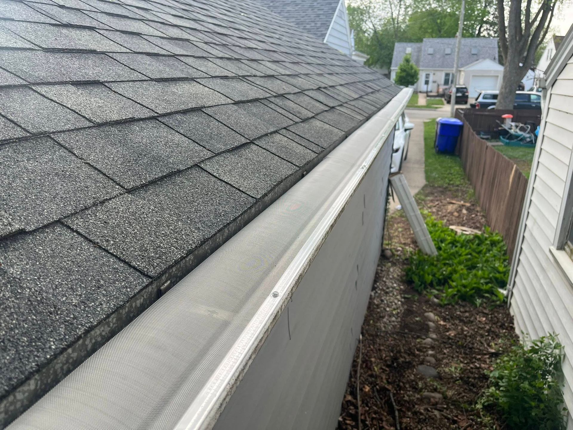 Installation involves securing the guard along the full length of each gutter run, checking that edges align with the roofline and that fasteners hold securely without damaging shingles. Gutter guards work best when gutters are clean before installation, so any existing buildup is removed first. The system is designed to handle typical Wisconsin weather, including snow melt and ice formation, though no guard prevents ice dams caused by attic heat loss or inadequate ventilation.